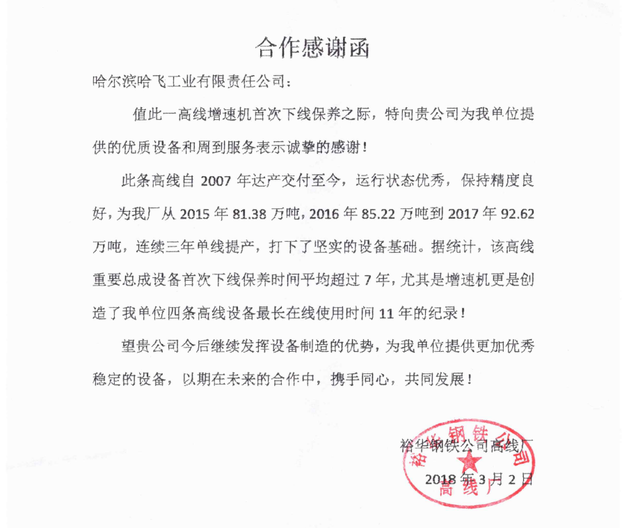 哈爾濱哈飛工業(yè)有限責(zé)任公司旗下的機(jī)電設(shè)備制造產(chǎn)業(yè)是目前國(guó)內(nèi)規(guī)模大、專業(yè)的高速線材軋機(jī)和棒材軋機(jī)整機(jī)及備件的生產(chǎn)制造企業(yè)。公司現(xiàn)坐落于哈爾濱市平房區(qū)汽車(chē)零部件工業(yè)園B區(qū),占地面積30000多平方米。現(xiàn)有員工近550人,其中具有中高級(jí)職稱的研發(fā)及工程技術(shù)人員100余人。 公司曾獲得冶金部授予的“高線軋機(jī)設(shè)備優(yōu)單位”稱號(hào)、國(guó)家技術(shù)進(jìn)步二等獎(jiǎng)等獎(jiǎng)項(xiàng),公司生產(chǎn)的十八項(xiàng)高線軋機(jī)重要部件通過(guò)了技術(shù)鑒定... +MORE